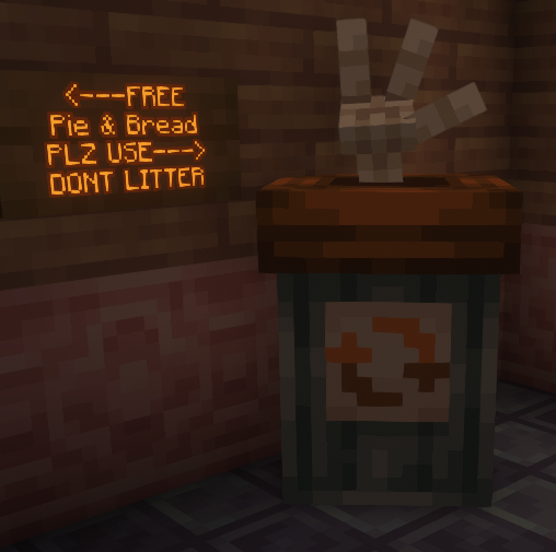 I am so tired of people littering in my realm. You can use people’s crafting tables and enchanting tables, why not trash cans?