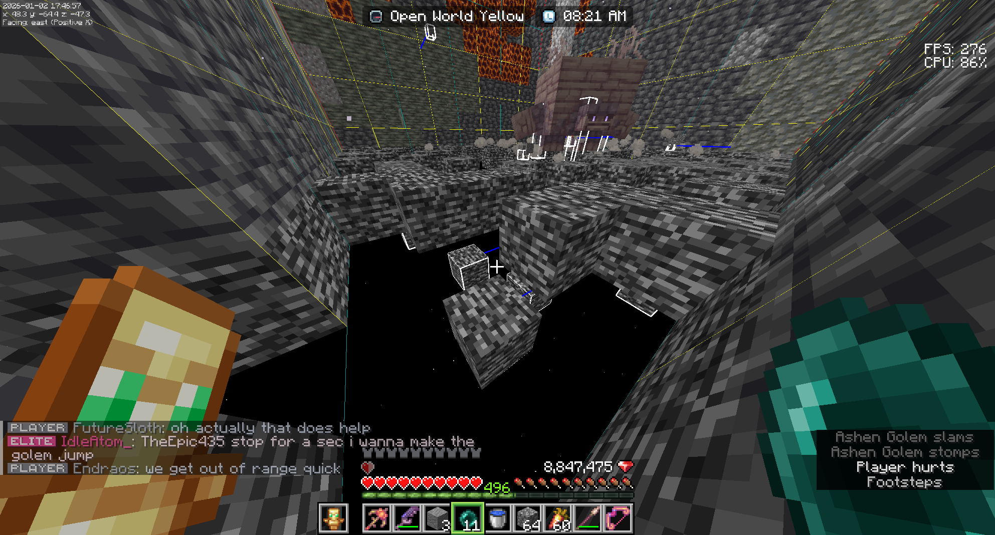 As such, over the void as is seen in this screenshot, the bedrock effectively gets destroyed. If one were to do this with their nether roof, the bedrock blocks could be dislocated downwards if one dug underneath the bedrock.
