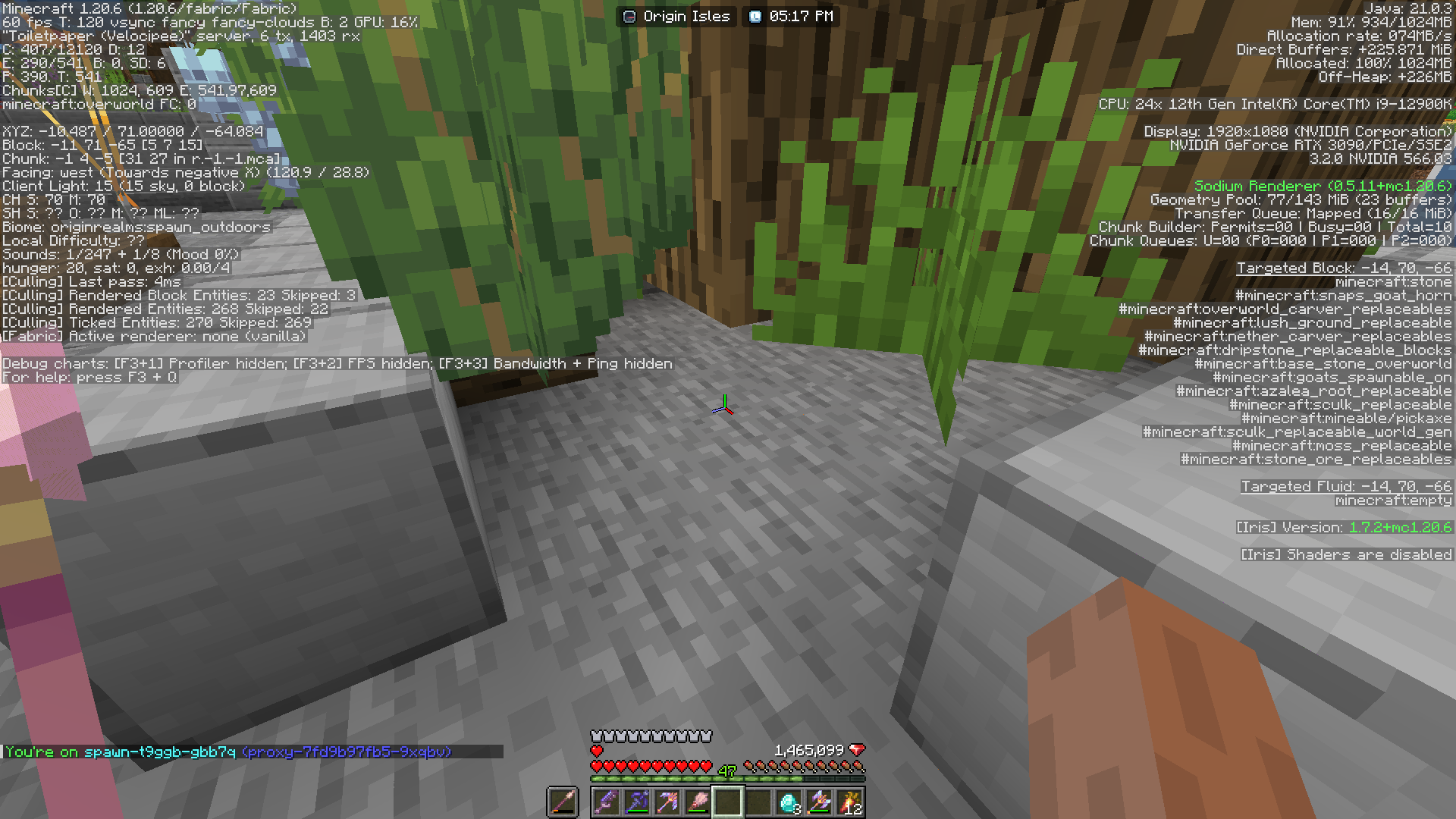 The spawn tree at these coordinates in this spawn instance has no dirt