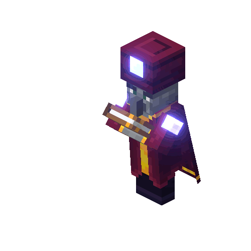 Gameplay: The enchanter would have AI similar to that of the chillager, where they avoid the player, however instead, they would surround themselves or hide behind other mobs. The player is intended to focus on just killing usually. The enchanter however would entice the player to set battle priorities, in order to set the enemies back to normal and kill them. By standing behind the strong mobs, the player is also convinced to be more tactical, or get hit trying to get close the enchanter. Overall it would allow a small difficulty jump to old mobs, and allows stronger players some sense of challenge still in the overworld, without affecting new players.